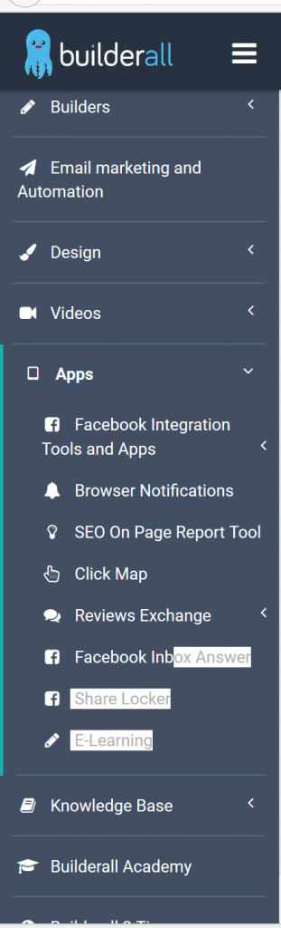 Blogging Software, Sales Funnel Software, Email marketing, Video Creation tools, Create floating Videos on your page, Heatmaps (follow visitor movement of the mouse), lead generation APP CREATION (Android and iOS), SEO Tools, Facebook Integration Tools, Push Browser Messages, Graphic Tools, Presentation Builder, Membership Software, Conversion And Success Monitoring, and the List goes on
